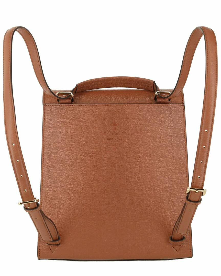 - Block M Convertible Leather Backpack in sienna leather and gold-tone hardware with exterior pocket
