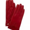 - Channel Quilted Cuff Cashmere-Lined Leather Gloves in red with logo plaque and faux button accents
