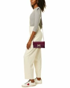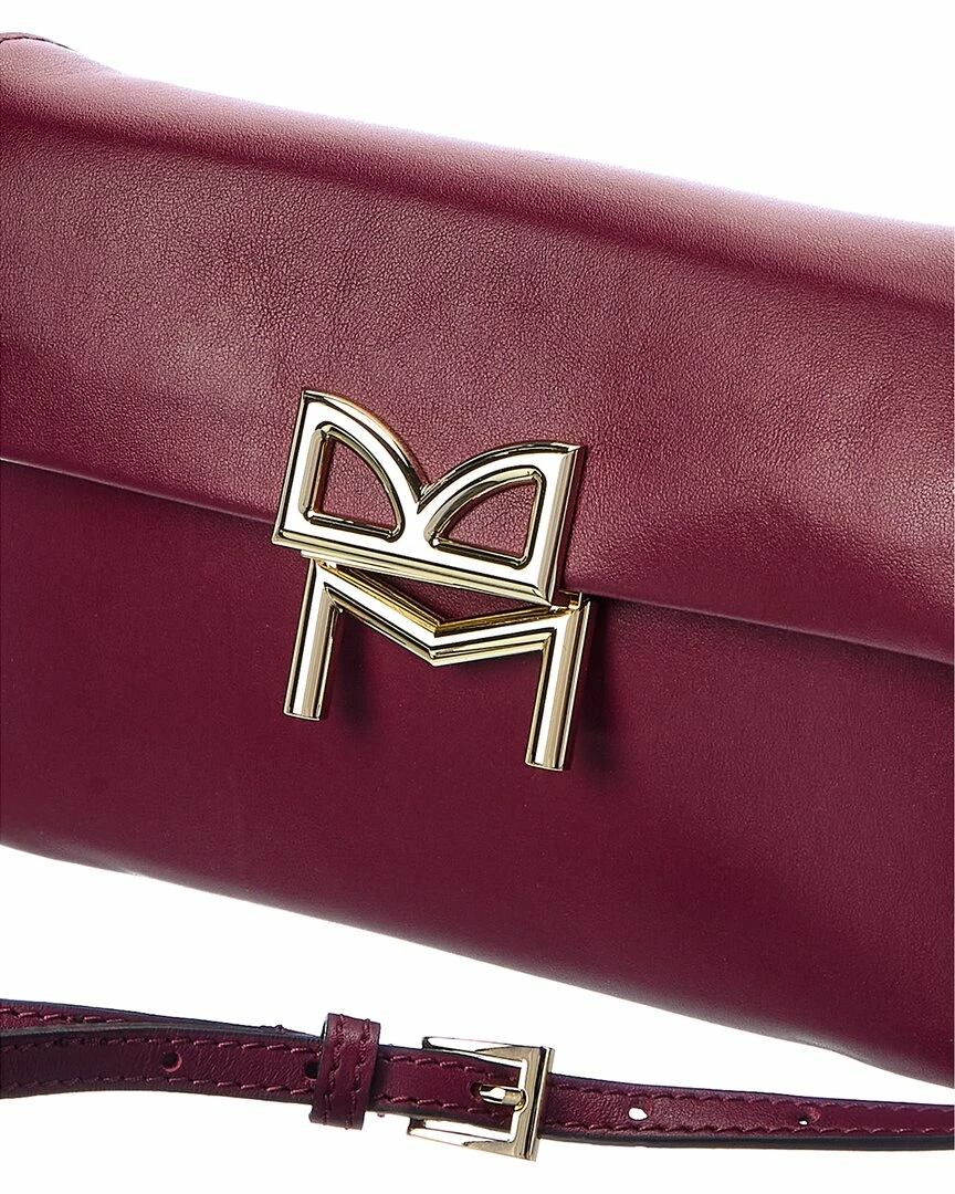 - Concertina Micro Leather Crossbody in berry leather and gold-tone hardware with logo accents and magnetic pocket