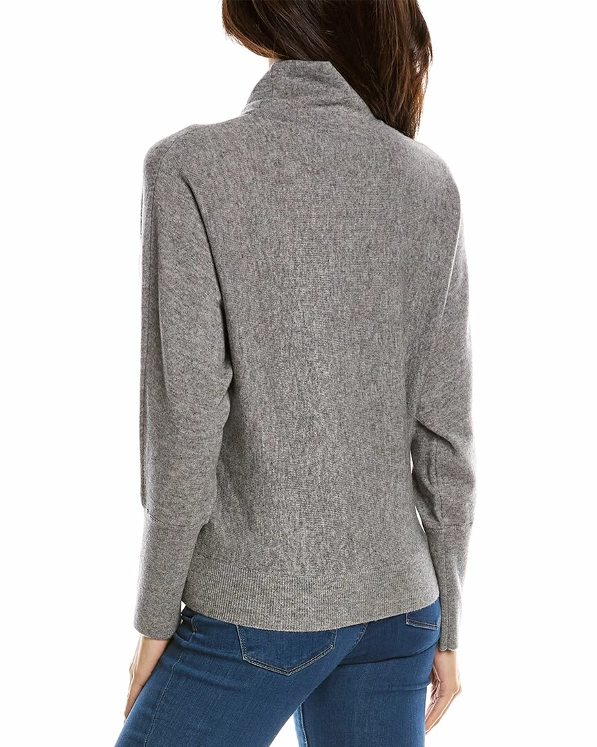 - Dolman Mock Wool & Cashmere-Blend Sweater in grey with gathered mock neck, dolman sleeves and ribbed trim