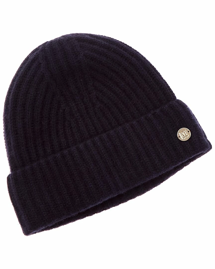 - Fashioned Rib Cashmere Hat in navy with round logo accent