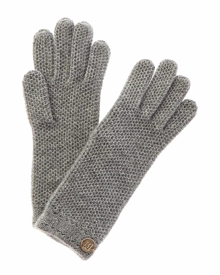 - Honeycomb Knit Cashmere Gloves in grey with round logo accent