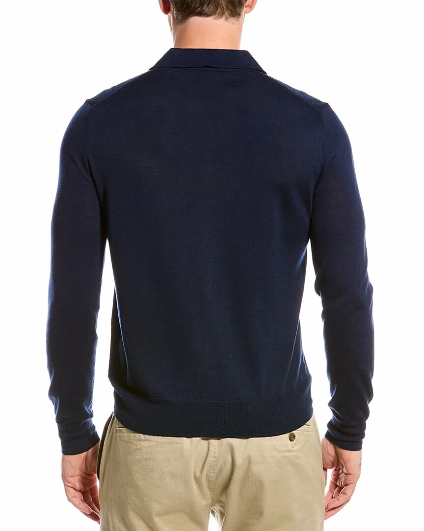 - Merino Wool Polo Sweater in navy with ribbed trim