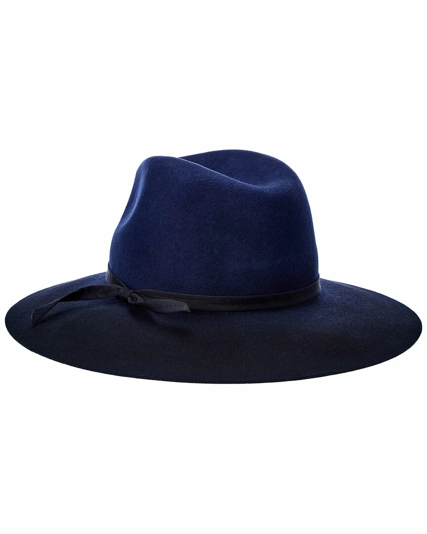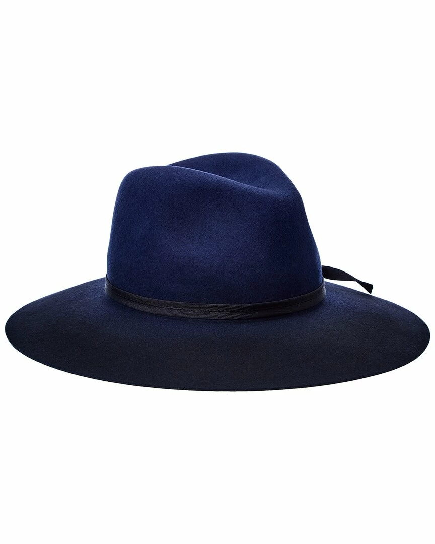 - Ombre Suede-Trim Wool Felt Fedora in navy with grosgrain bow
