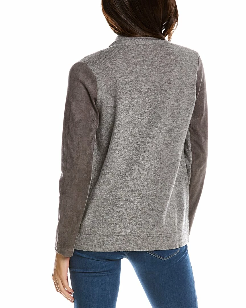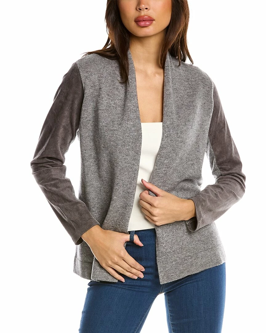 - Open Wool & Cashmere-Blend Cardigan in grey with faux suede sleeves