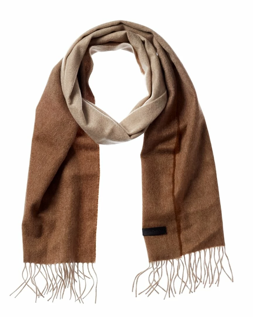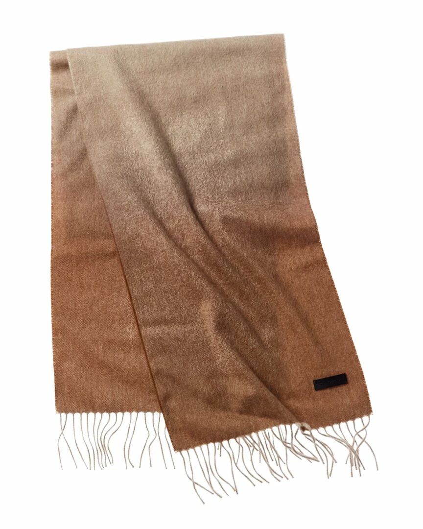 - Woven Ombre Cashmere Scarf in beige with fringe at both ends